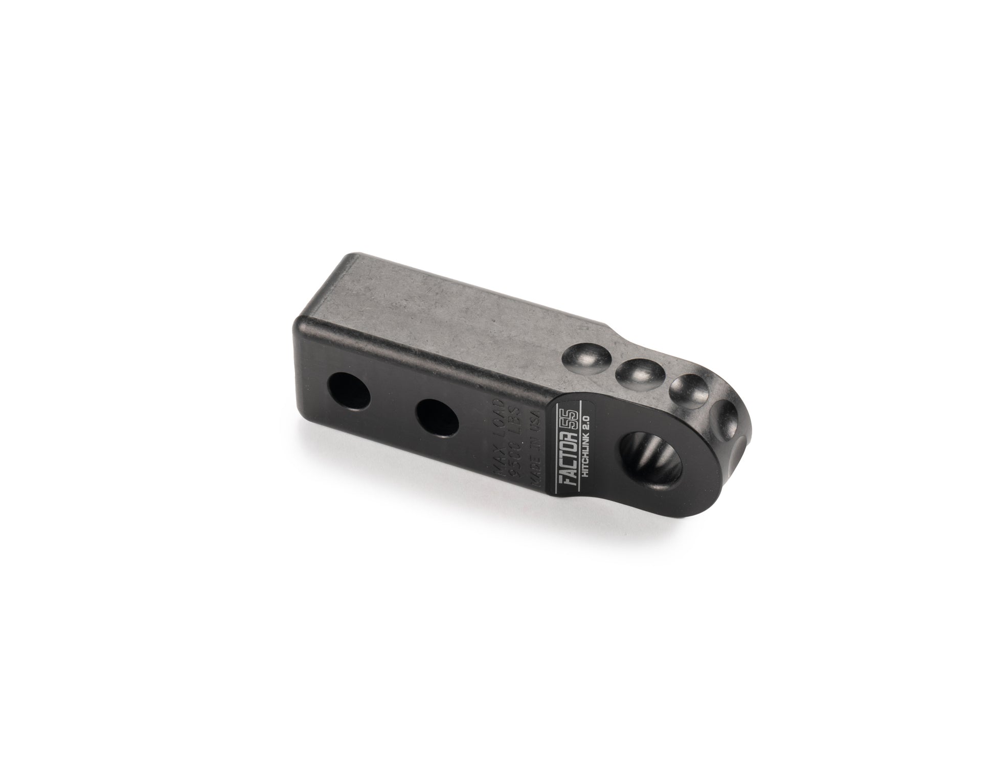 Hitchlink 2.0 Reciever Shacle Mount. Use your receiver as a recovery tow point.Features:Color: BlackLightweight precision CNC machined 6000 series aluminumWeighs only 1.9 pounds. Steel versions weigh up to 8 poundsRated at 9500 poundsUltimate failure at 51,000 poundsFits standard 2 inch receiversFits common 3/4 screw pin shackles/D-RingsAnodized or powder coated for oxidation protectionMade in USAWarning:Never exceed factory receiver hitch pull ratingAlways use a quality steel alloy 5/8 inch hitch pinAlways pull in line with the hitch, do not bind or side load the shackle