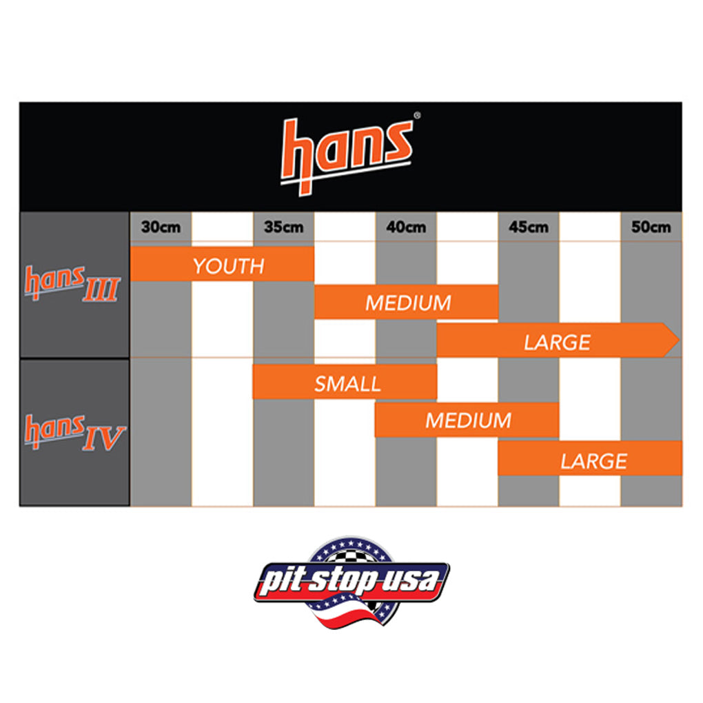 The HANS device (Head and Neck Support) was developed to prevent neck injuries and skull fractures by restraining your head from snapping forward in the event of an accident. The HANS III represents the third generation of injection molded HANS devices and features a contemporary approach to reducing weight. Using an all new design and polymer, the device features a hollow collar that substantially minimizes weight. Engineered reinforcements ensure an exceptionally strong structure that provides the same level of safety as every HANS device. The reduced mass guarantees the lightest and most comfortable injection molded HANS ever. Two flexible tethers on the collar are attached to the helmet to prevent the head from snapping forward or to the side during a wreck. This dissipates the force of a crash from your neck and distributes it to your shoulders and chest, reducing impact. The Hans Device has proven so effective it has been mandated by virtually all professional racing sanctioning bodies including NASCAR, NHRA, Formula 1, CART, the FIA, and even Monster Trucks. Each HANS Device is sold complete with two post anchor attachments (enough for one helmet) and matching tether. This is the medium size version with a 20 degree angle and SFI certification.